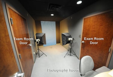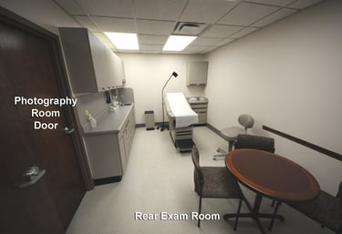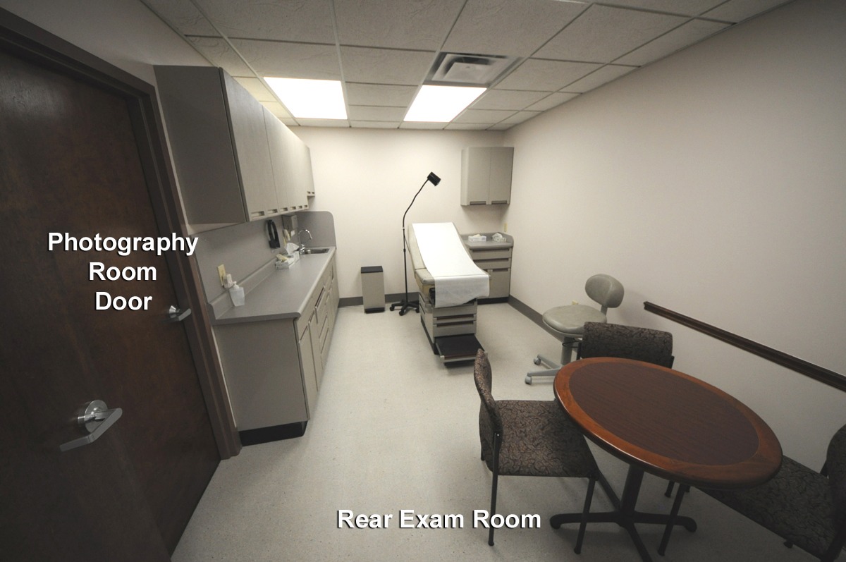 I renovated my office building with a plastic surgery practice in mind. However, the building is multi-use and is equally suitable for a clerical business. The two main exam rooms are large enough to have a small table and chairs in addition to the exam table. The patient's consultation can be done comfortably with the patient and family members in the room before the exam. The two main exam rooms open into an adjacent dedicated photography room, allowing consistent preop and postop images with efficiency, patient convenience, and privacy. The larger third exam room is for minor procedures and postoperative care, such as dressing changes and drain removal. A 220-volt outlet is available in the procedure room for equipment that requires this voltage.