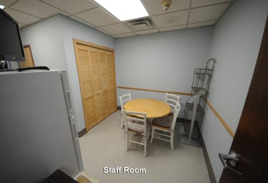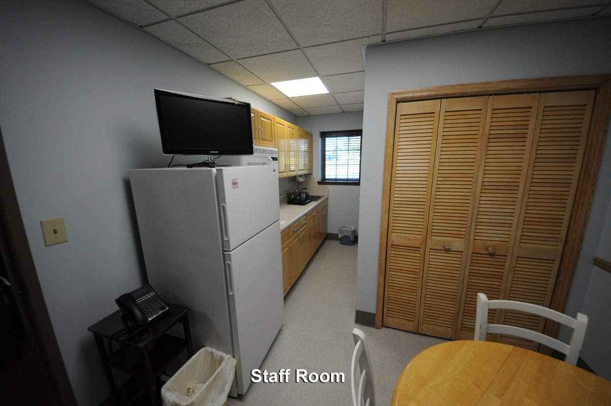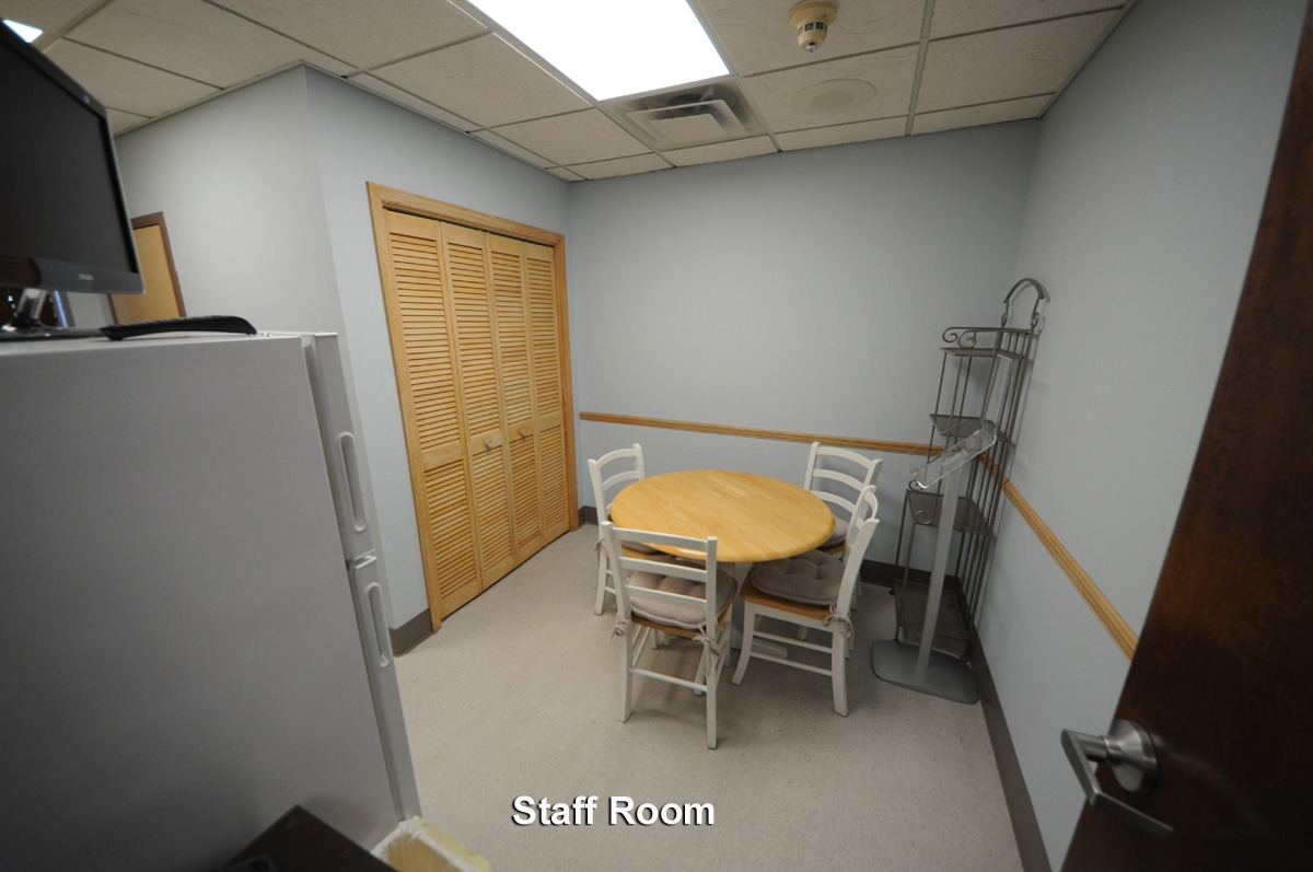 Other building features include a staff kitchen, a staff bathroom, and a housekeeping utility closet. There is a dedicated conference room for staff meetings, educational presentations, and meetings with industry representatives. A closet in the rear of the building is used for storing red bag medical waste in between scheduled pick-ups.