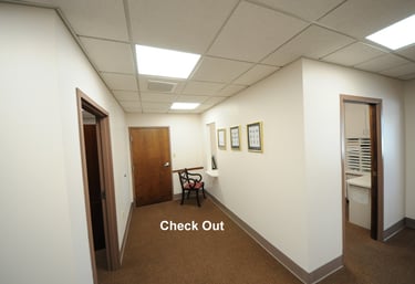 Patients appreciate the convenience of direct pull-up parking and the large covered awning over the front entrance. There is parking for three staff cars in the rear of the building. The surgeons can park at the office and walk back and forth to the hospital. There is extra parking in the hospital parking lot adjacent to the rear of the building.